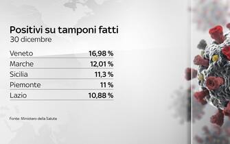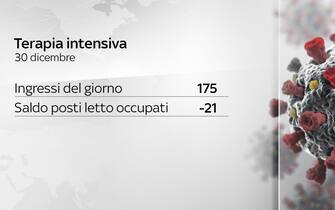 La provincia autonoma di Trento, Lombardia, Veneto, Friuli e Lazio superano il 30% di posti letto in terapia intensiva occupati da malati Covid, livello considerato d’allarme. Intanto secondo il bollettino del 30 dicembre, nelle ultime 24 ore sono stati registrati 16.202 nuovi positivi. I test effettuati sono 169.045. La percentuale di positivi sale al 9,58% (ieri 8,7%). I DATI