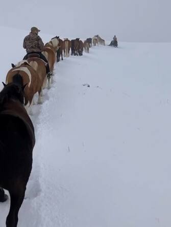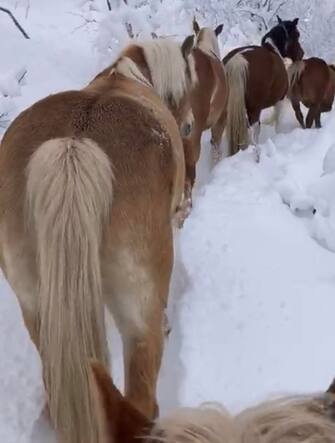 Immagini spettacolari dall’Umbria. Il gruppo di 31 animali è stato portato a valle da Manuela Brandimarte del “Sibillini Ranch” e dai suoi familiari. “È stata una vera e propria impresa, era la prima volta con tutta questa neve”, ha raccontato la giovane. Ora i cavalli resteranno a Norcia fino a primavera