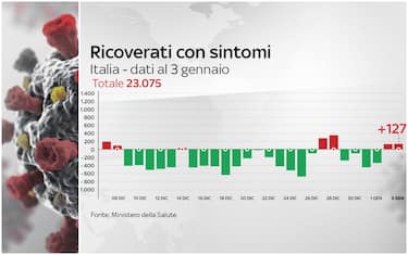 In Italia, secondo il bollettino del ministero della Salute del 3 gennaio, i malati di Covid-19 ricoverati con sintomi sono 23.075 (+127). È il secondo giorno consecutivo che si registra un incremento
