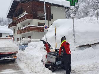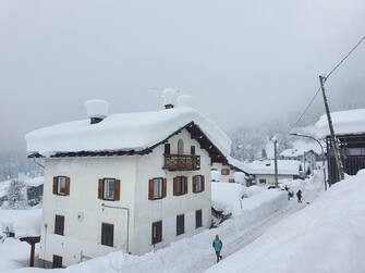 Nella foto: Falcade, dove si prova a tornare alla normalità dopo le nevicate delle scorse ore