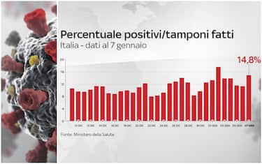 Secondo il bollettino del ministero della Salute, sono stati 18.020 i nuovi casi di coronavirus registrati in Italia nelle ultime 24 ore, su 121.275 tamponi effettuati. Sale la percentuale positivi-casi testati che arriva al 14,85% (ieri 11,3%). I ricoverati con sintomi sono in totale 23.291 e i pazienti in terapia intensiva 2.587