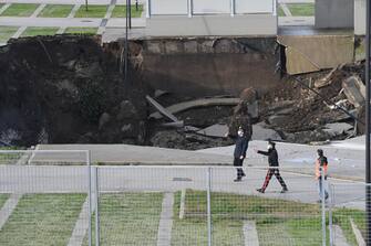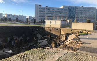Un cratere profondo circa 20 metri ha squarciato il cemento inghiottendo le auto, ma senza causare feriti. Il Covid residence della struttura è stato evacuato e resterà chiuso per qualche giorno. Tra le probabili cause un cedimento legato alle piogge dei giorni scorsi o a una perdita di ossigeno dalle condutture sottostanti, mentre al momento si esclude un atto doloso. LA FOTOGALLERY