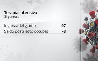Il bollettino del ministero della Salute del 31 gennaio riporta 237 nuove vittime registrate, in discesa rispetto a ieri (421), ma anche a confronto con i numeri delle ultime settimane. Un dato che si affianca alla diminuzione dei ricoveri e degli ingressi in intensiva (97, ieri 132). Sono 11.252 i nuovi casi su 213.364 test effettuati in 24 ore (compresi gli antigenici rapidi)