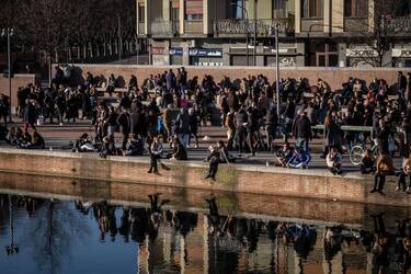 Domenica 31 gennaio con il sole, a Milano. Così tante persone hanno riempito soprattutto la zona della Darsena per una passeggiata o per mangiare qualcosa in compagnia, nell'ultima domenica da zona arancione per tutta la regione lombarda prima del passaggio alla zona gialla