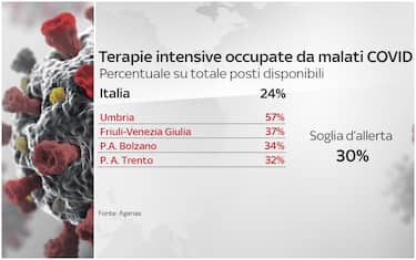 A livello nazionale le terapie intensive occupate sono al 24%, sotto la soglia d’allerta fissata al 30%. Alcune regioni però superano la soglia: Umbria (57%), Friuli Venezia Giulia (37%), Provincia autonoma di Bolzano (34%) e Provincia Autonoma di Trento (32%)