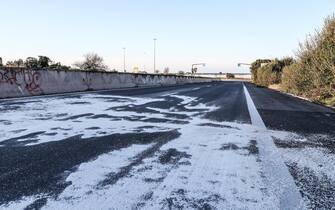 Il gelo non risparmia Roma, dove diverse strade tra cui la Cristoforo Colombo che collega la capitale a Ostia si è risvegliata con una coltre di ghiaccio