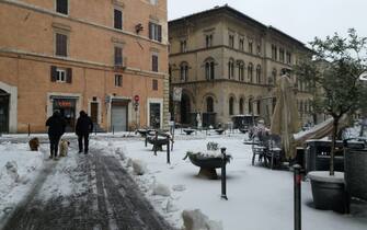 Una fitta nevicata ha ricoperto di bianco le strade di Perugia