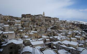 San Valentino con la neve su gran parte della Basilicata: i lucani si sono svegliati con alcuni centimetri caduti la notte scorsa in quasi tutta la regione. Stamane sono imbiancati anche i rioni Sassi di Matera (foto archivio)