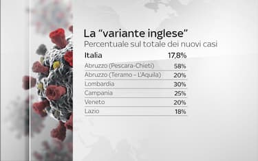 Come detto, la presenza della variante inglese in Italia è ormai accertata. Le regioni in cui la mutazione del virus circola di più sono Abruzzo, Lombardia, Campania, Veneto e Lazio