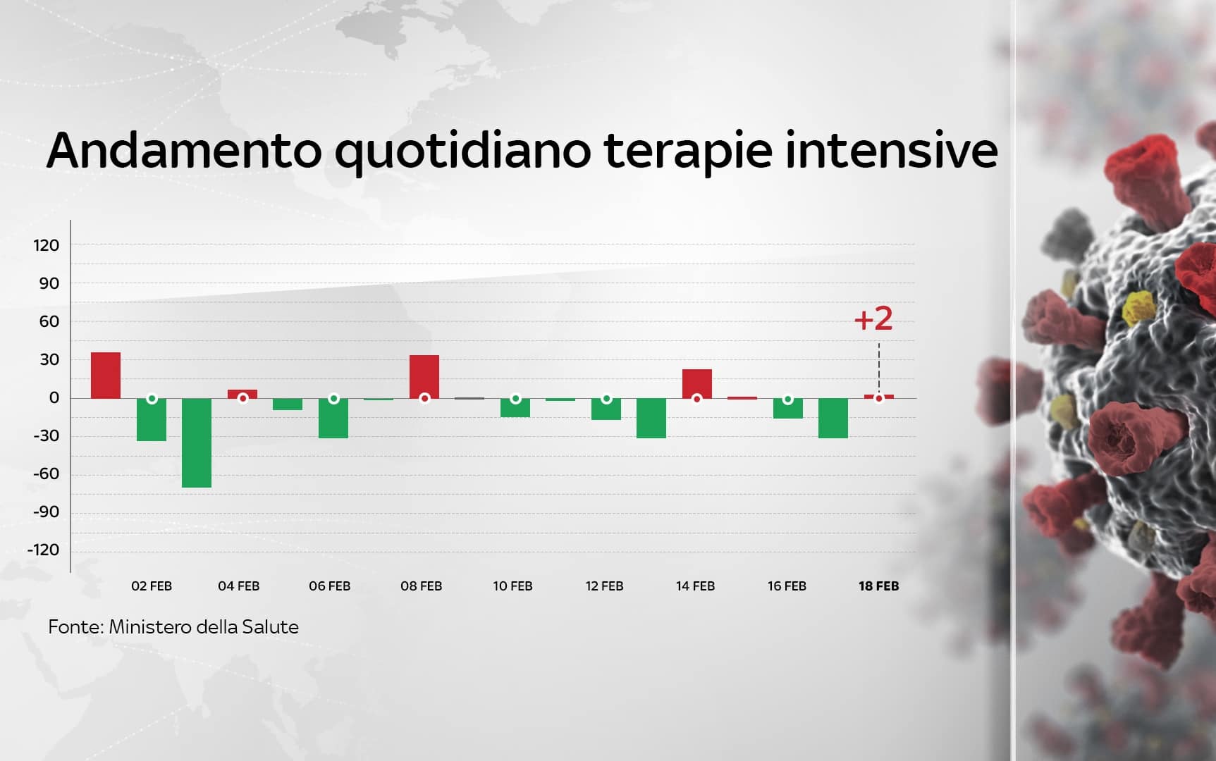 Nelle ultime 24 ore sono stati 13.762 i nuovi casi di coronavirus registrati in Italia, mentre ieri erano stati 12.074. I tamponi effettuati sono 288.458, contro i 294.411 di ieri. Nel conteggio, da qualche settimana, rientrano anche i test antigenici rapidi. La percentuale di positivi considerando il totale dei tamponi è al 4,7% (ieri 4,1%), ma il dato è influenzato dal conteggio dei test antigienici rapidi che si sommano a quelli molecolari. Sono 347 i morti, due i pazienti in più in terapia intensiva. È questo il quadro che emerge dal bollettino del ministero della Salute del 18 febbraio (AGGIORNAMENTI LIVE - SPECIALE - LA SITUAZIONE IN ITALIA CON MAPPE E INFOGRAFICHE).