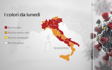 Entrano in vigore le ordinanze del ministro Speranza sulle nuove fasce di rischio. La Sardegna è l’unica bianca, mentre in rosso ci sono Campania, Emilia-Romagna, Friuli Venezia Giulia, Lazio, Lombardia, Marche, Molise, Piemonte, Puglia, Veneto e la Provincia autonoma di Trento. Bolzano è arancione, ma ha restrizioni locali più dure. Ecco i colori dei diversi territori e cosa si può fare e non fare