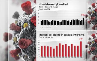Continuano ad aumentare i pazienti Covid sia in terapia intensiva sia negli altri reparti. In particolare, è stato registrato un picco di ingressi giornalieri in rianimazione: sono 319, mai così tanti da quando viene diffuso questo dato. Balzo anche dei decessi: sono 502 in 24 ore. È quanto emerge dal bollettino del ministero della Salute del 15 marzo sulla situazione coronavirus in Italia. Nell'ultimo giorno, nel nostro Paese i nuovi casi sono stati 20.396 (il giorno prima erano stati 15.267)