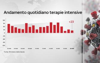 Nel saldo quotidiano tra ingressi e uscite, sono 23 le persone in più in terapia intensiva rispetto a ieri
