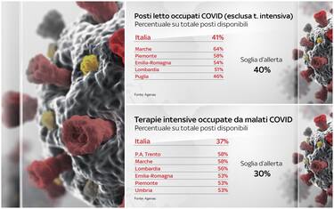 Escluse le terapie intensive, in Italia la percentuale di posti letto occupati negli altri reparti è del 41%. In questo caso la soglia d’allerta è fissata al 40%