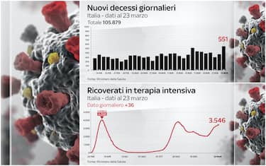 Il bollettino quotidiano del ministero della Salute registra 551 decessi in un giorno, il dato più alto dal 19 gennaio quando erano stati 603. Continua a salire il numero di pazienti in terapia intensiva (3.546, +36) e nei reparti ordinari (28.428, +379). I nuovi casi giornalieri sono 18.765, rilevati su 335.189 tamponi, con la percentuale di positivi al 5,59%