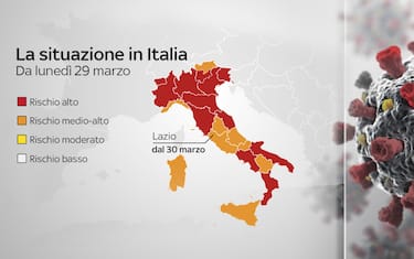 Valle d'Aosta, Calabria e Toscana vanno ad aggiungersi ai territori in zona rossa. Dal 30 marzo, invece, il Lazio passa all'arancione. L'Italia resta ancora divisa in due colori, non ci sono aree gialle o bianche. Il 3, 4 e 5 aprile, in tutta la nazione, saranno in vigore le regole previste per le aree di rischio maggiore