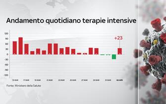 Dopo i dati del 30-31 marzo e 1 aprile, i pazienti ricoverati in rianimazione aumentano di nuovo: sono 3.704, con 232 ingressi in 24 ore. Lo riporta il bollettino quotidiano del ministero della Salute. I nuovi casi giornalieri sono 21.932, rilevati su 331.154 tamponi, con la percentuale di positivi al 6,6%