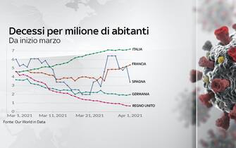 Le vittime registrate in 24 ore sono 481, in calo rispetto al giorno precedente (501). In totale, i morti dall’inizio della pandemia sono 110.328