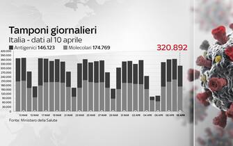 I tamponi processati nell’ultimo giorno sono 320.892, in calo rispetto ai 362.973 di ieri. Nel conteggio rientrano sia i test antigenici rapidi sia i tamponi molecolari