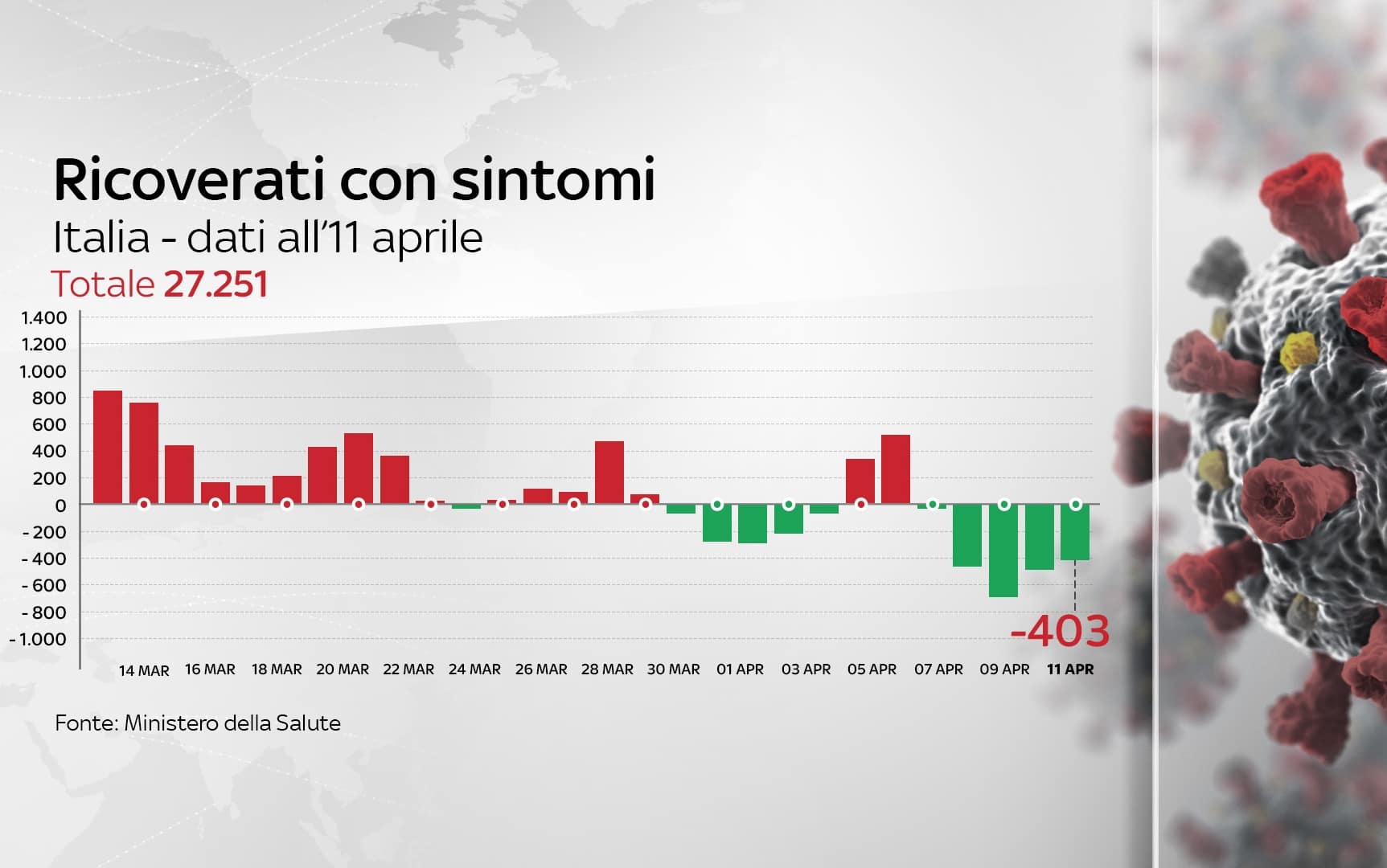 In Italia, dall'inizio della pandemia, le persone risultate positive al coronavirus, compresi guariti e deceduti, sono 3.769.814. Le vittime in totale sono 114.254, con 331 decessi nelle ultime 24 ore. I guariti sono un totale di 3.122.555. I ricoverati con sintomi sono 27.251 (-403). Sono invece 502.169 le persone in isolamento domiciliare. I tamponi sono in tutto 53.054.866 - di cui 42.107.589 processati con test molecolare e 10.947.277 con test antigenico rapido -, in aumento di 253.100 rispetto al 10 aprile. Le persone testate sono finora 23.920.532, al netto di quanti tamponi abbiano fatto.