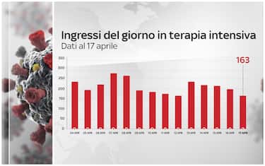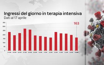 Secondo il bollettino del ministero della Salute del 17 aprile, prosegue il calo dei pazienti Covid ricoverati in terapia intensiva: sono 3.340 (-26). Nelle ultime 24 ore gli ingressi giornalieri in terapia intensiva sono stati 163: è il quarto giorno di fila che questo numero diminuisce. Intanto si registrano 15.370 i nuovi casi di coronavirus e 310 vittime in un giorno