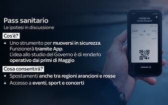 Il documento citato dal premier Draghi nell'annunciare diverse riaperture a partire dal 26 aprile permetterebbe di muoversi anche tra zone rosse e arancioni e di entrare allo stadio, ai concerti e di partecipare ad altri eventi pubblici. Si prevede che attesti la sussistenza di una delle seguenti condizioni: l'avvenuta vaccinazione, un tampone negativo nelle ultime 48 ore, o la guarigione dal Covid