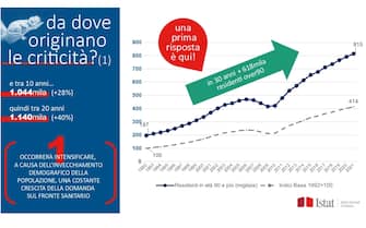 Tra le cause delle crisi demografica in Italia anche l'aumento quasi costante negli ultimi 30 anni delle percentuale della popolazione over 90. L'istituto stima una ulteriore crescita del 28% di questa cifra tra 10 anni e del 40% tra 20 anni