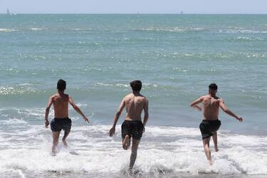 Nei lidi, riaperti al pubblico nel rispetto delle norme anti-Covid, qualcuno ha sfidato l'acqua, ma in migliaia hanno preferito prendere il sole sul lettino per la prima tintarella