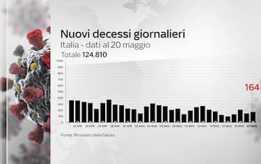 Secondo il bollettino del ministero della Salute del 20 maggio, torna a salire il numero di morti in 24 ore. Il totale delle vittime arriva a 124.810. Nell’ultimo giorno sono stati 5.741 i nuovi casi di coronavirus, su 251.037 tamponi (ieri 5.506 casi su 287.256 test). La percentuale di positivi sale al 2,3%. Per quanto riguarda gli ospedali, sono 10.383 (-635) i ricoverati con sintomi e 1.544 (-99) le persone in terapia intensiva (69 ingressi del giorno). Dall'inizio della pandemia, i casi totali sono 4.178.261