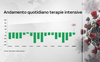 Nel saldo quotidiano tra ingressi e uscite nei reparti di terapia intensiva sii registra un -20 nelle ultime 24 ore