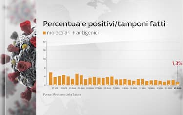 Come detto, torna sotto il 2% la percentuali di positivi: considerando il totale dei tamponi, è all’1,27% (ieri era al 2,3). Si tratta del dato più basso da quando, il 15 gennaio scorso, sono stati introdotti i test rapidi nel calcolo
