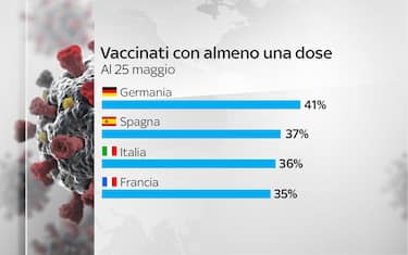 In Italia, al 25 maggio, il 36% della popolazione ha ricevuto almeno la prima dose di vaccino anti-Covid. In Europa hanno fatto meglio di noi la Spagna, che è al 37%, e la Germania, che è al 41%. Dietro di noi, invece, c’è la Francia (35%)