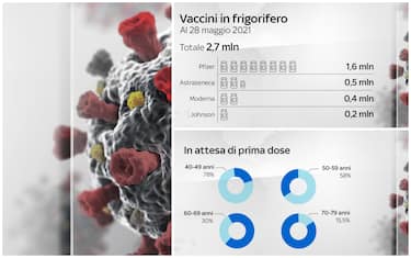 Alla data del 28 maggio, le dosi di vaccino in frigorifero e quindi ancora da utilizzare sono 2,7 milioni. Si tratta di 1,6 milioni di Pfizer, mezzo milione di AstraZeneca, 400mila di Moderna e 200mila di Johnson&Johnson. Il commissario straordinario per l'emergenza Covid, generale Francesco Paolo Figliuolo, ha ribadito oggi: "Arriveranno 20 milioni di vaccini a giugno"