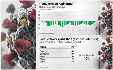 Continuano a calare i ricoverati con sintomi da Covid-19: sono 6.482, vale a dire 109 in meno rispetto al giorno precedente. Il dato è in calo da 21 giorni di seguito