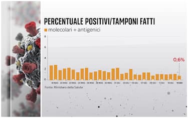 Covid, percentuale positivi sui tamponi allo 0,6%: è un dato record