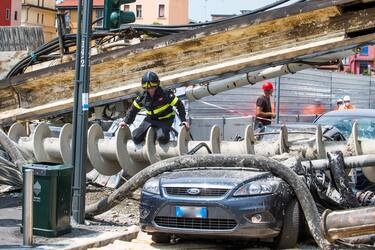 Milano, crolla una trivella di 10 metri in un cantiere. VIDEO