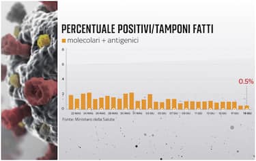 Covid, stabile allo 0,5% la percentuale di positivi su tamponi fatti. I DATI