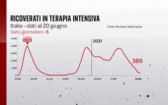 Secondo il bollettino del 20 giugno, le vittime giornaliere sono 17, era dallo scorso 5 ottobre che non si registrava un dato simile. I morti da inizio pandemia sono 127.270. Intanto oggi 881 nuovi casi su 150.522 tamponi effettuati. La percentuale dei positivi è allo 0,6%. Continua il calo delle terapie intensive occupate da pazienti Covid e dei ricoverati con sintomi
