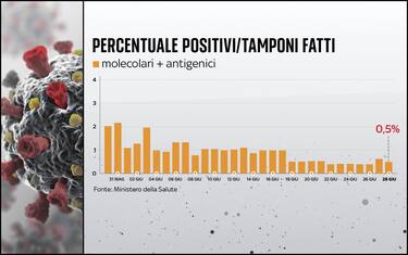 Stabile la percentuale dei positivi sui tamponi giornalieri effettuati: il dato è allo 0,5%