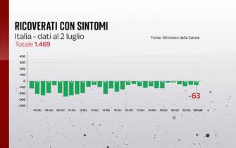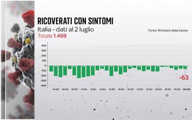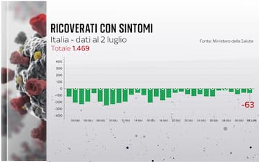 La pressione dei pazienti Covid sugli ospedali italiani continua a calare, con i ricoverati nei reparti ordinari che scendono sotto quota 1.500. È quanto emerge dal bollettino del ministero della Salute del 2 luglio. Nell'ultimo giorno, nel nostro Paese i nuovi casi sono stati 794 (il giorno prima erano stati 882)