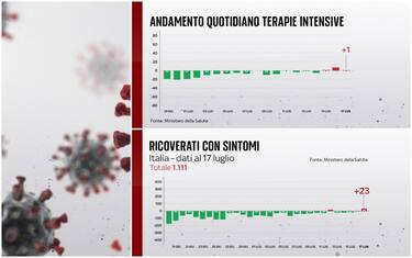 I nuovi contagi in Italia, secondo il bollettino del ministero della Salute del 17 luglio, sono 3.121. In leggera crescita sia le rianimazioni (+1), che i ricoveri ordinari (+23). I tamponi effettuati sono 244.797, con il tasso di positività che si attesta all'1,3%, in calo rispetto all'1,4% del giorno precedente