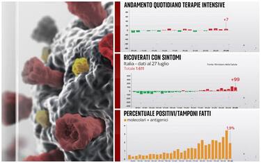 Secondo il bollettino del 27 luglio, si registrano 4.522 nuovi casi su 241.890 tamponi giornalieri effettuati. La percentuale dei positivi è in netta diminuzione rispetto al 3,5% di ieri. Sono 23 i morti nelle ultime 24 ore. Salgono i pazienti Covid nei reparti di terapia intensiva (+7) e i ricoverati con sintomi nei reparti ordinari (+99)