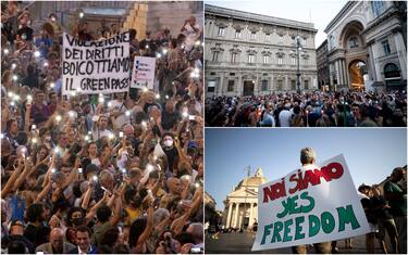 Fiaccolate in 12 città, da Trento a Palermo, e altri eventi per dire "no" al Green Pass obbligatorio. Continuano, in tutta Italia, le manifestazioni per protestare contro la decisione del governo, che dal 6 agosto prossimo ha reso obbligatoria la certificazione verde per una serie di attività (Nella foto, il corteo a Milano)