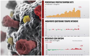 Secondo il bollettino del 31 luglio, si registrano 6.513 nuovi casi su 264.860 tamponi giornalieri processati. La percentuale dei positivi è in lieve calo rispetto al 2,7% di ieri. Sono 16 i morti nelle ultime 24 ore. Salgono i pazienti Covid nei reparti di terapia intensiva (+13) e i ricoverati con sintomi nei reparti ordinari (+39)