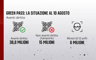 Secondo il bollettino del 10 agosto, aumentano i pazienti ricoverati con sintomi negli ospedali: sono 2.880 (+94). In rianimazione ci sono 322 persone (-1). Nelle ultime 24 ore, sono stati 5.636 i nuovi casi di coronavirus in Italia, su 241.766 tamponi (ieri 4.200 casi su 102.864 test). La percentuale di positività scende al 2,3% (era al 4,1%). Dall'inizio della pandemia, i casi totali sono 4.406.241 e le vittime 128.273 (+31)