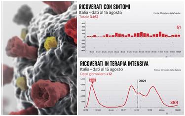 Secondo il bollettino del 15 agosto, aumentano i pazienti positivi negli ospedali: in rianimazione ci sono 384 persone (+12) e negli altri reparti 3.162 (+61). Nelle ultime 24 ore, sono stati 5.664 i nuovi casi di coronavirus in Italia, su 160.870 tamponi. Il tasso di positività è salito al 3,5% (era al 2,8% il giorno prima). Dall'inizio della pandemia le vittime sono 128.432 (+19)