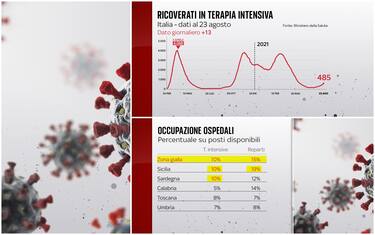 Secondo il bollettino del ministero della Salute del 23 agosto, le terapie intensive occupate da malati Covid in Italia sono 485 (+13), con 45 nuovi ingressi nelle ultime 24 ore