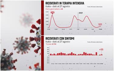 Sale il numero dei pazienti in rianimazione (511), con 42 nuovi ingressi nelle ultime 24 ore, e di quelli ricoverati nei reparti ordinari (4.114). Il bollettino del 27 agosto sulla situazione in Italia segnala 7.826 nuovi casi rilevati su 265.480 test giornalieri. Dall'inizio della pandemia, le persone risultate positive al coronavirus, compresi guariti e deceduti, sono 4.517.434
