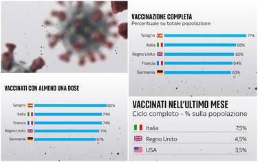 Se si guardano i dati su i vaccinati nell'ultimo mese, considerando le persone con il ciclo vaccinale completo, per l'Italia la percentuale sulla popolazione è del 7,5% (un dato maggiore rispetto a Uk e Usa)