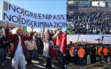 Manifestazioni e scioperi in varie città in Italia contro l'obbligo di green pass al lavoro proprio nel primo giorno di entrata in vigore della misura: il 15 ottobre. Da Torino a Genova e Trieste, migliaia di lavoratori si sono fermati e protestano davanti ai cancelli delle loro aziende. Sit in e cortei a Livorno, Ancona e Bolzano. (Nella foto: il terminal PSA di Genova Pra')